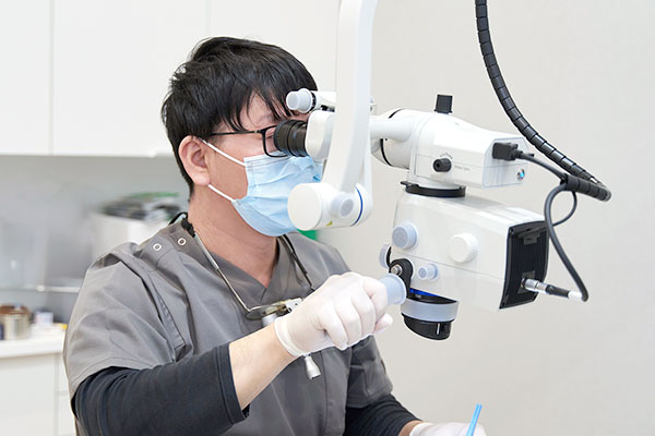 他院で「抜歯が必要」と言われた場合でも、諦める前に一度ご相談ください。当院ではマイクロスコープ(歯科用顕微鏡)やCTを完備し、肉眼では見えない根管内部の感染除去や、わずかな異変も見逃さない精密治療に注力しています。また、神経の保存を目的としたMTAセメントなどの先端素材も導入。一つひとつの工程を丁寧に行うことで、大切な歯の寿命を延ばすための最善を尽くします。可能な限り「抜かない・削りすぎない」治療を徹底します。