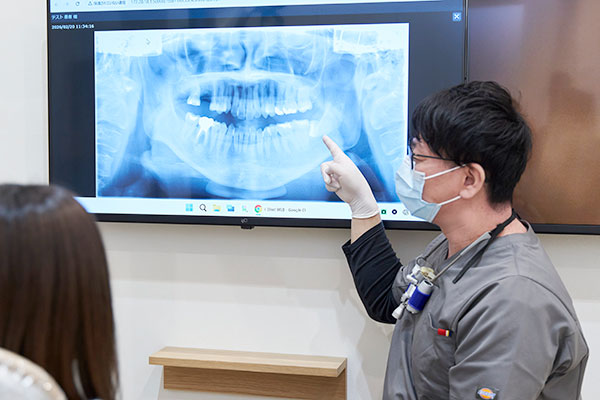 治療内容に不安を感じることのないよう、当院ではすべての処置において徹底した可視化を行っています。小型の口腔内カメラやマイクロスコープを使用し、むし歯の状態や治療の経過を逐一撮影。患者さまご自身の目で「現在の状況」と「治療の結果」を確認していただきます。一方的な説明ではなく、画像を通じてお口の情報を共有することで、納得感のある医療を提供します。「勝手に削られた」ということがないよう、必ず事前の確認と承諾を経てから処置を開始いたします。