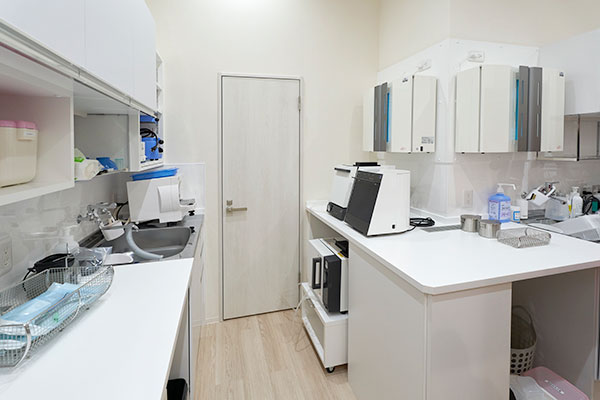 使用した器具を徹底的に洗浄・滅菌するための専用スペースです。医療機関として高い水準の衛生管理を徹底しています。