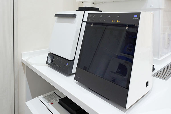 飛散する技工物の削りカス、金属の破片などを吸引する装置です。空気中への粉塵の拡散を食い止めることで、院内感染のリスクを低減し、患者さまが常に清潔な空気の中で安心して治療を受けられる環境を整えています。