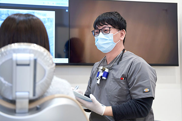 ご記入いただいた問診票に基づき、詳しくお話を伺います。「痛みがある」「詰め物が取れた」といった直接的なお困りごとはもちろん、治療に対する不安や、過去の歯科治療で嫌だったことなど、些細なことでも遠慮なくお聞かせください。