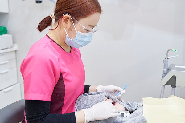 当院には保育士資格を持つスタッフが在籍しており、お子さまへの対応に慣れているため、初めての歯科医院でも安心してお越しいただけます。診療室は個室もご用意しており、小さなお子さまの場合は親御さまもご一緒に中に入っていただけます。また、どうしても治療が必要な際には、大人と同様に表面麻酔や電動麻酔注射器を用い、極限まで痛みを抑えた処置を行います。お子さまにとっても、親御さまにとっても、ストレスなく「通いたい」と思える環境作りに努めています。